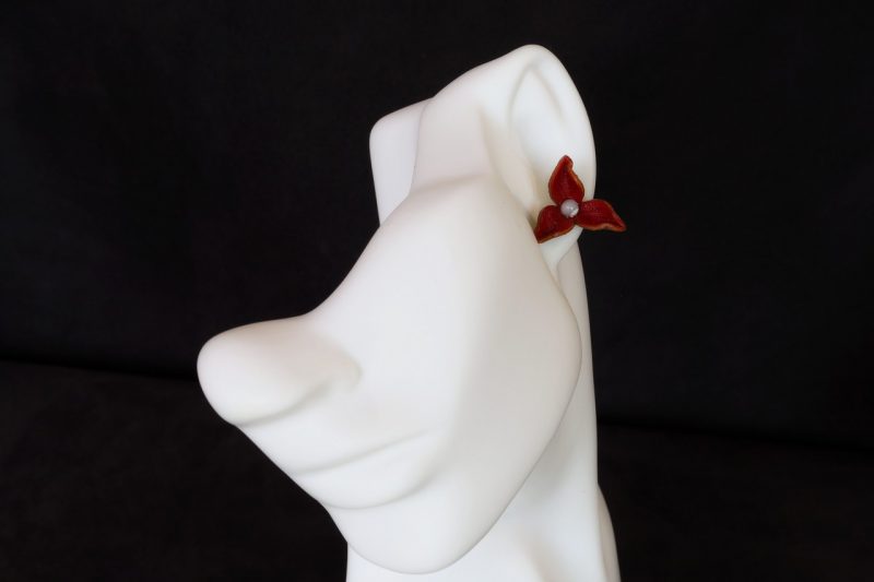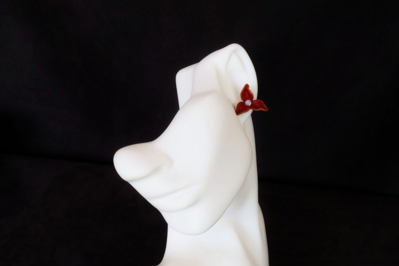 Ces boucle d oreille fleur rouge 3 pétales sont réalisées dans notre atelier artisanal en Dordogne (France), dans une démarche Peau-éthique et responsable.