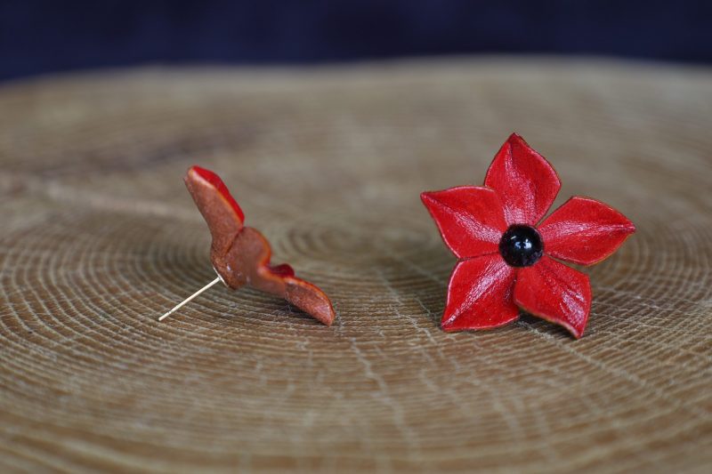 Ces boucle d oreille fleur rouge cœur noir étoilée sont réalisées en cuir de vache pleine fleur à tannage végétal, respectueux de l’environnement et de la santé.