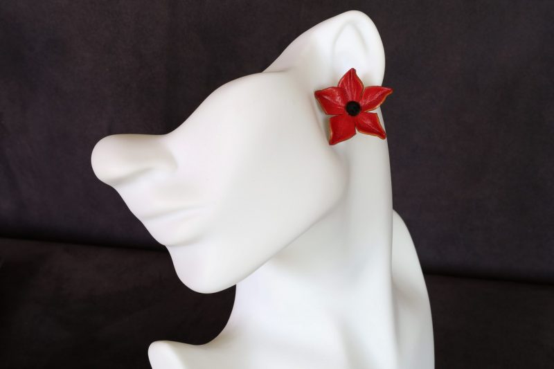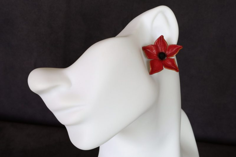 Ces boucle d oreille fleur rouge cœur noir étoilée sont réalisées dans notre atelier artisanal en Dordogne (France), dans une démarche Peau-éthique et responsable.