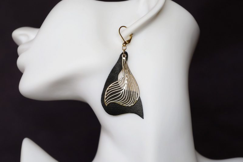 Ces boucles d oreille noir pendante feuille sont réalisées dans notre atelier artisanal en Dordogne (France), dans une démarche Peau-éthique et responsable.