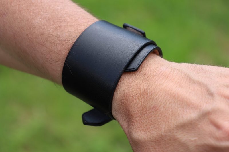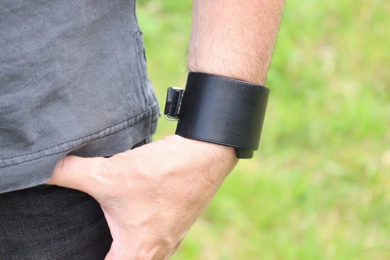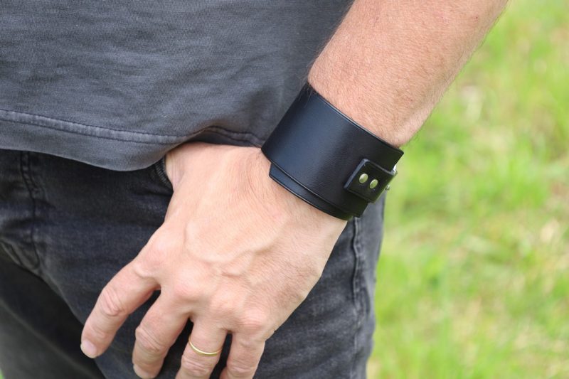 Voici un bracelet de force cuir fonctionnel d’environ 4,5 cm de large.