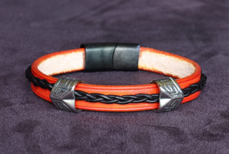 Les tranches du bracelet ont été astiquées pour avoir un rendu soigné. Enfin, le cuir a reçu une finition brillante et protectrice. (Pas de finition sur le côté en contact avec la peau, afin de respecter votre santé.)