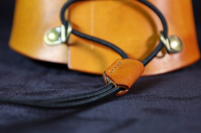 Cette protection se ferme avec un élastique et est munie d’une pièce de cuir qui assure la complète fermeture par recouvrement.