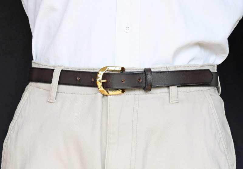 Cette ceinture femme de 23 mm de large vous est proposée avec une boucle à facettes en laiton plaqué or de la maison Poursin, entreprise française à grande renommée.
