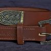 Cette ceinture viking Gokstad est réalisée dans notre atelier artisanal en Dordogne (France), dans une démarche Peau-éthique et responsable.